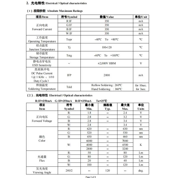 | Voltage | R=2.0-2.4V G=3.0-3.4V B=3.0-3.4V W=3.0-3.4V |